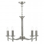 The 5 light pendant is finished in satin chrome, has a feature ribbed central column. Supplied with 50cm of cable and chain and with a dual mount opti..