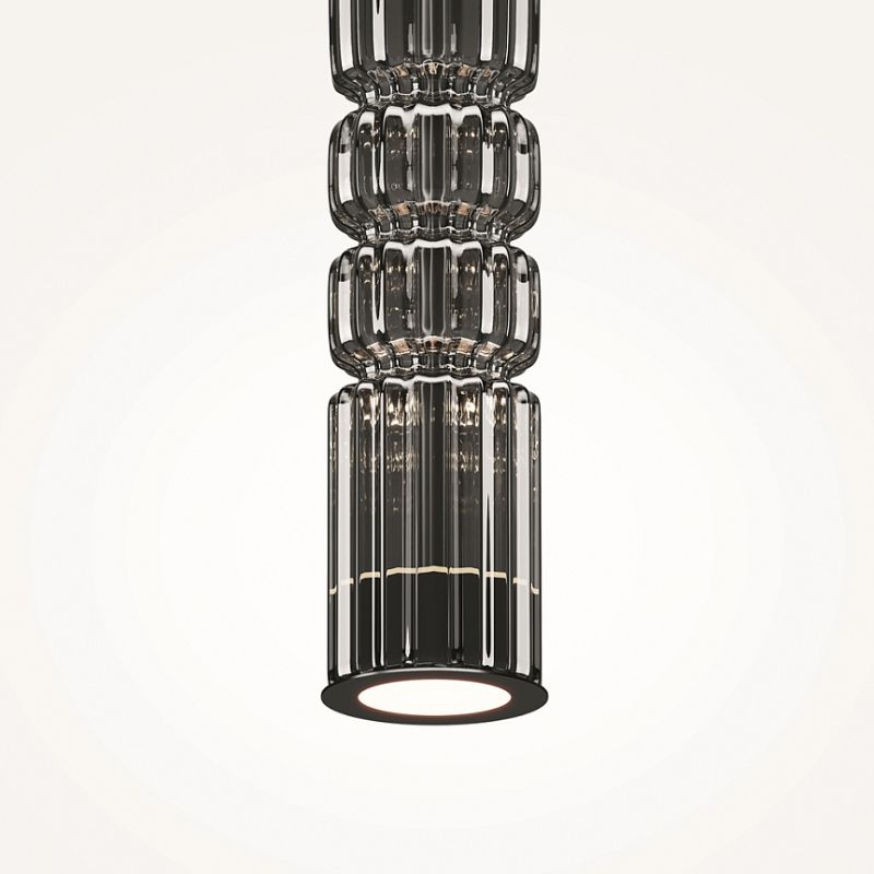A modern LED pendant from the series Ordo is made of a black metal base and a cylindrical glass shade with a vertical embossed pattern in smoky colour and built-in 920 lm, 3000K LED. This stunning design will be a striking display for modern or contemporary decor. This pendant is fully height adjustable at the point of installation. Matching products are available.