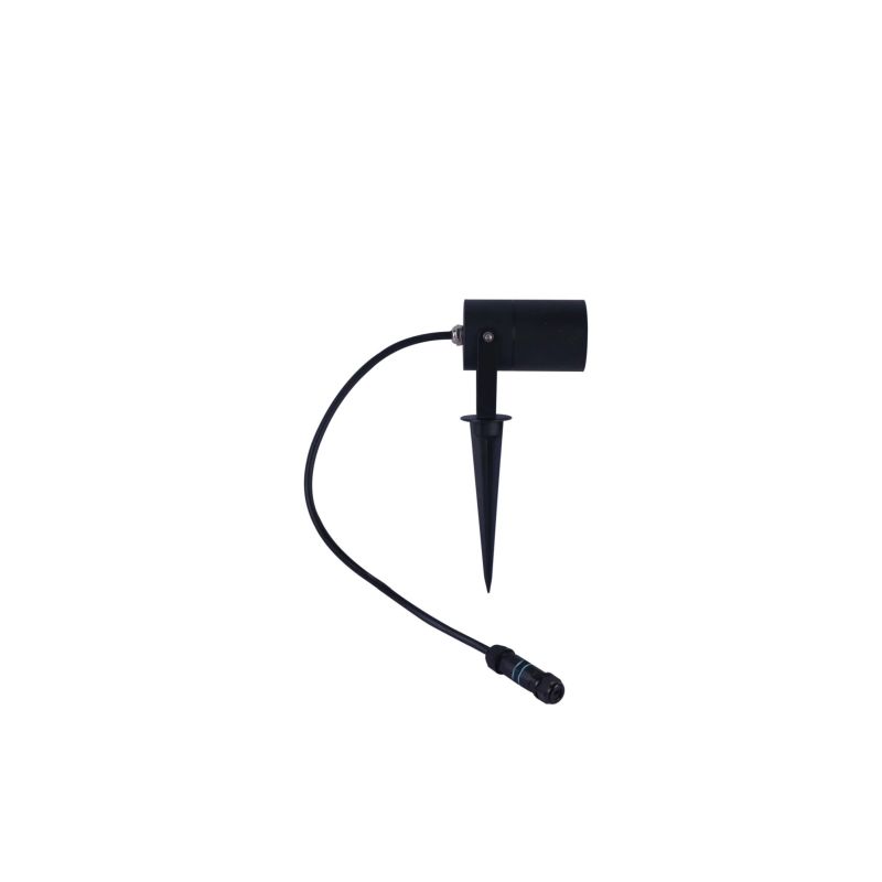 This outdoor spike spot is made of a black colour metal body with a peg and round adjustable head at socket GU10. This item has a rating of IP65, meaning that it is fully splash proof and resistant to thermal shock. This simple design provides bright illumination and is perfect for modern or contemporary outdoor settings, making this a perfect choice for illuminating your garden at night.