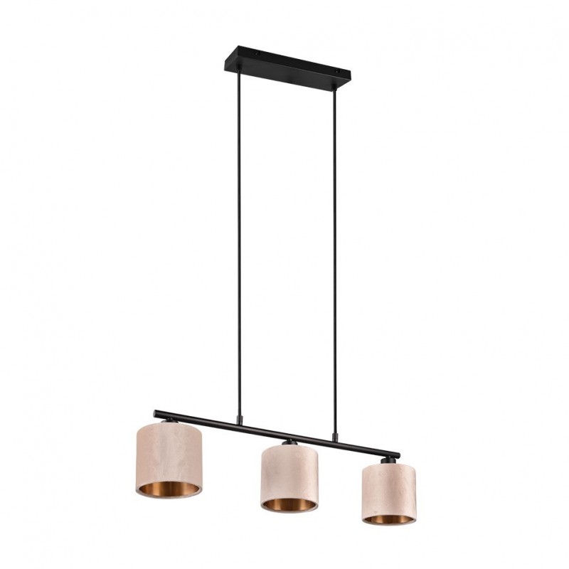The classic and simple beauty of the JULIETA pendant light creates an elegant and atmospheric effect. The neutral colour and the warm-looking fabric of the shades wrap the light in cosiness and radiate calm into your surroundings. The golden nuances on the inside of the shades also make the light a stylish eye-catcher. You too can create a harmonious ambience around your dining area! The material mix of black matt metal and beige velvet can be easily combined with existing interiors. The use of LED light sources is recommended for energy-saving lighting.